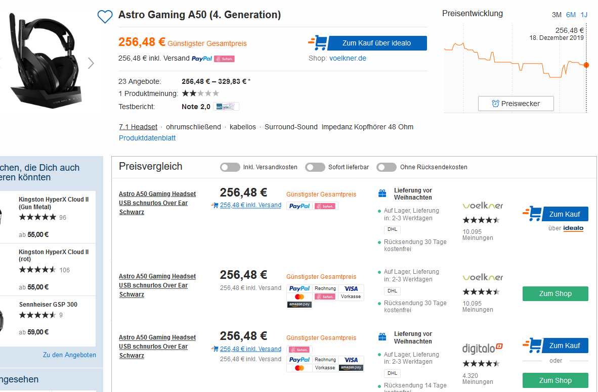 Bei Mediamarkt bekommt man das ASTRO GAMING A50 Wireless + Base Station for PlayStation® 4/PC Gaming Headset, Schwarz für 219,00 Euro inkl.Versand (PVG ab 256,48)