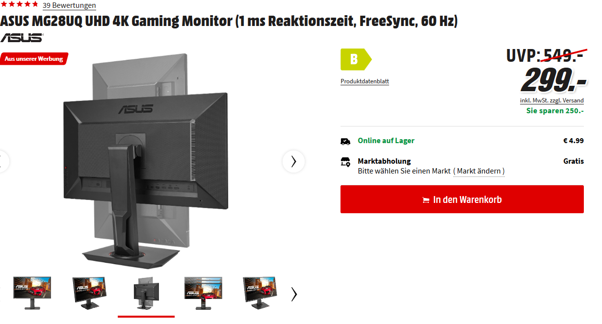 Asus MG28UQ 71,12 cm (28 Zoll) Monitor 299 Euro
