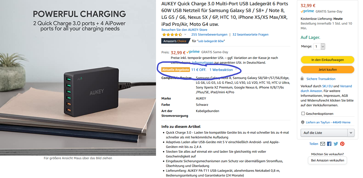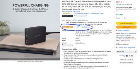 Auf Amazon bekommt man mit dem Rabatt-Code: X8JZO45H AUKEY Quick Charge 3.0 Multi-Port USB Ladegerät 6 Ports 60W USB Netzteil für 21,99€ inkl.Versand statt 32,99€