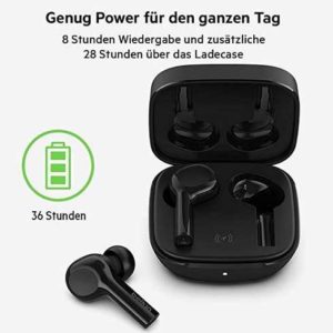 - Bis zu 8 Stunden Betriebszeit für jeden Ohrhörer und zusätzliche 28 Stunden über das Ladecase