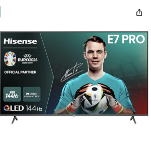 - Hisense 55E7NQ Pro 139 cm (55 Zoll) Fernseher, 4K UHD, QLED, Smart TV, Total HDR, Dolby Vision IQ Atmos, 144Hz (VRR), HDMI 2.1, Game Mode PRO, Triple Tuner, Alexa Built-In, Dunkelgrau, [2024] [Energieklasse F]