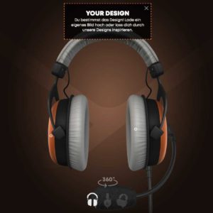 Ihr könnt bei den Kopfhörern die Farbe vom Kopfband, von den Ohrpolstern und vom Aluring bestimmen. Außerdem könnt ihr sie mit einer Gravur versehen. Auch die Impedanz könnt ihr wählen.