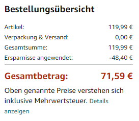 Damit kommt man auf einen Endpreis von nur 71,59€.