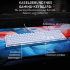 - Nützliche Gaming-Funktionen: Full-N-Key-Rollover (alle Tasten werden gleichzeitig ausgelesen), Anti-Ghosting (keine Fehleingaben), programmierbare Tasten + WIN-Key Sperre