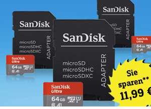 Bei Conrad bekommt man aktuell 3 Stück SanDisk Ultra® microSDXC-Karte 64 GB Class 10, UHS-I A1 zum Preis von 2.
