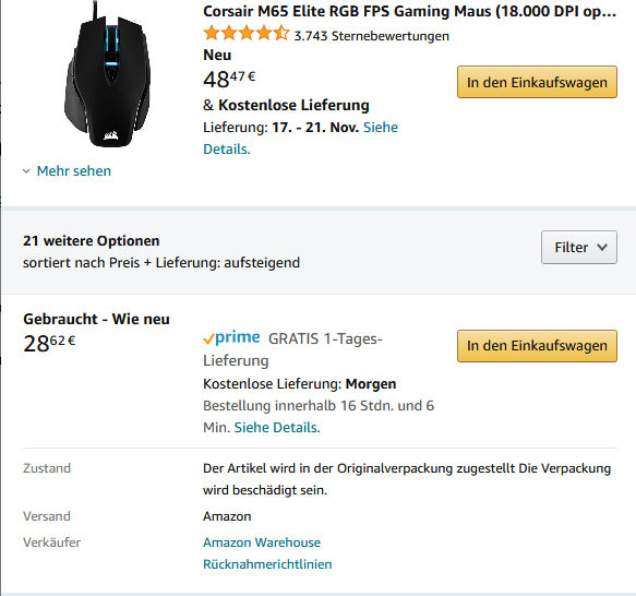 Leute, Leute, Leute…Amazon haut mal wieder einen raus…Die Corsair M65 Elite RGB FPS Gaming Maus für 39,99€ inkl. Versand.