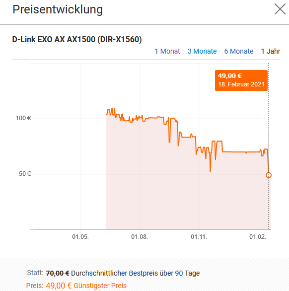 Im Vergleich kostet der Router 64€ https://www.idealo.de/preisvergleich/OffersOfProduct/200384006_-exo-ax-ax1500-dir-x1560-d-link.html