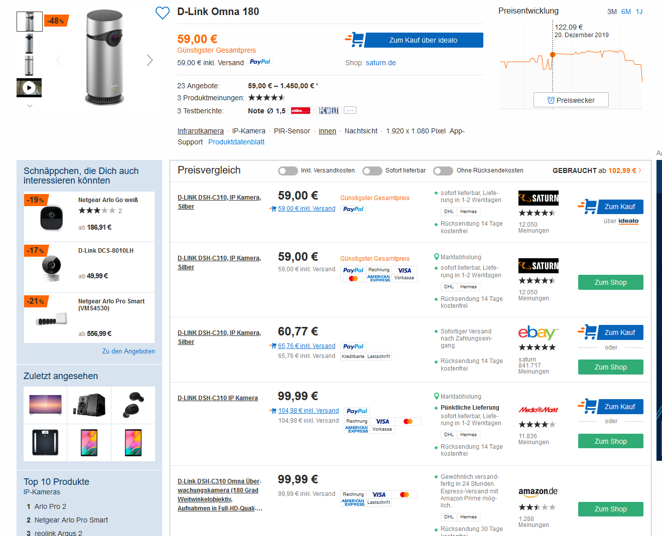 Bei Saturn bekommt man die D-Link DSH-C310 IP-Kamera (FHD, HomeKit, max. 128 GB) für 59€. Vergleichspreis: 99,99€ (idealo). Ersparnis: 40,99€.