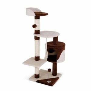 - Toller Katzen Kletter-und Spielbaum mit 1 Höhle, 3 Plateaus (2x rund, 1x rechteckig), 2 Spielbälle, 1 Spielseil