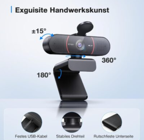 Wer eine hochwertige, einfach zu bedienende Webcam für Meetings, Streaming oder Online-Kurse sucht, macht mit der EMEET 4K Webcam alles richtig!