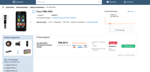 Bei ibood bekommt man unter alle Deals, den Fysic FMA-5000 Seniorenmobiltelefon für 105,90 statt PVG 204,95 Euro inkl.Versand
