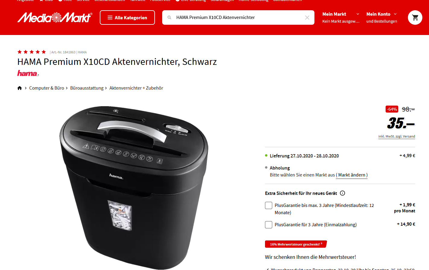 Der Hama Premium X10CD Aktenvernichter ist bei Saturn für nur 42,24€ bei Abholung im Markt bzw. für 47,23€ inkl.Versand erhältlich.