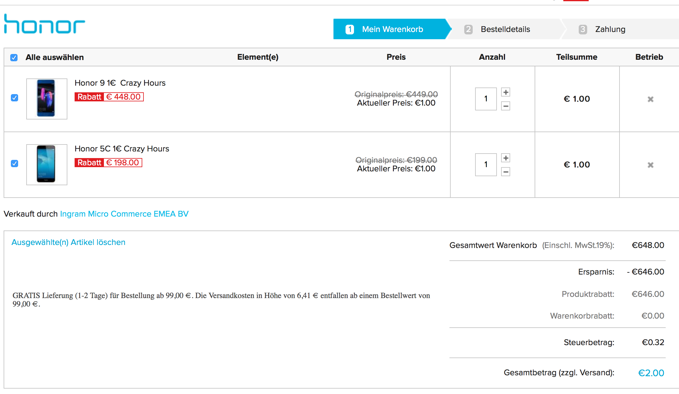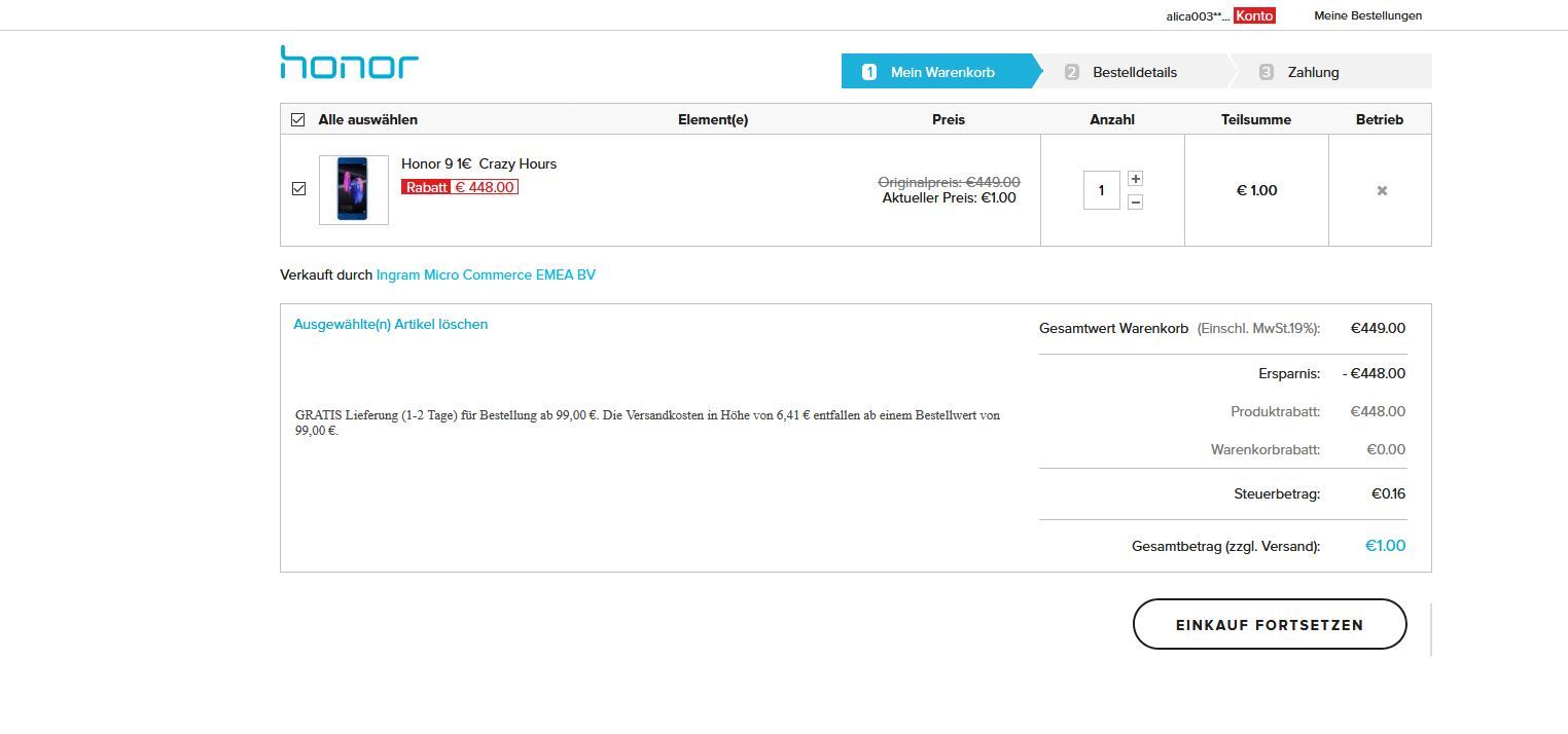 Markus123 (Gast) 11.11.2017, 13:34 #Das ist die reinste Verarsche. Ist einfach nur Marketing für Huawei, mehr nicht. War schon bei Lieferadresse einzutippen und dann Serverprobleme und alles war Weg. Beim 2ten Mal immer wieder auf die Startseite gelandet, wenn ich auf Einkauf fortsetzten gedrückt habe.