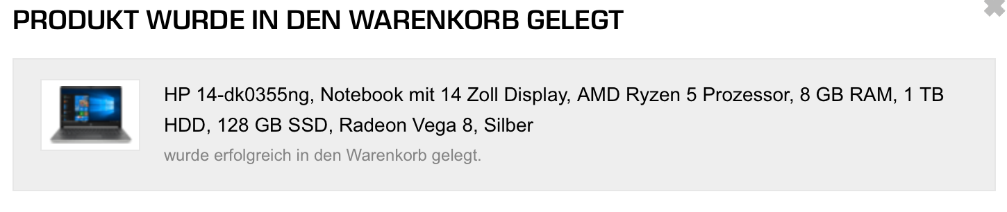 HP 14-dk0355ng, Notebook mit 14 Zoll Display, AMD Ryzen 5 Prozessor, 8 GB RAM, 1 TB HDD, 128 GB SSD, Radeon Vega 8, Silber für 399,- € Versandkostenfrei