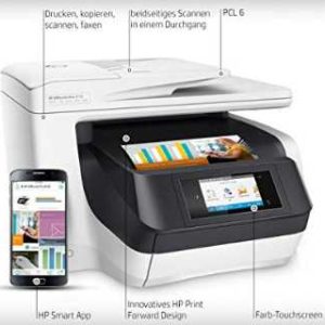 - Besonderheiten: zuverlässiger und sparsamer All-in-one Drucker mit professioneller Qualität bei schneller Druckgeschwindigkeit, Innovatives HP Print Forward Design (schneller Duplexdruck, effiziente Papierhandhabung), PCL 5c/6/PS, Netwerkdrucker mit WiFi, doppelseitiges Scannen und ADF, drucken vom Smartphone oder Tablet, HP ePrint, Apple Airprint, Google Cloud Print, LCD Touchdisplay, geringer Stromverbrauch