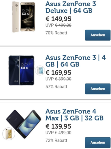 Außerdem gibt es noch andere ZenFone Smartphones im Angebot.