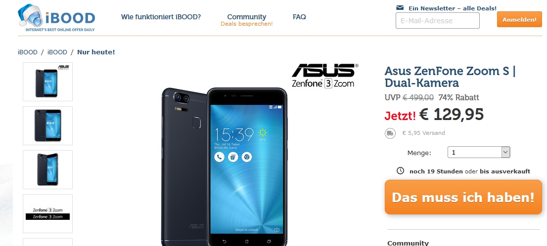 iBood: Asus ZenFone Zoom S für nur 135,90€