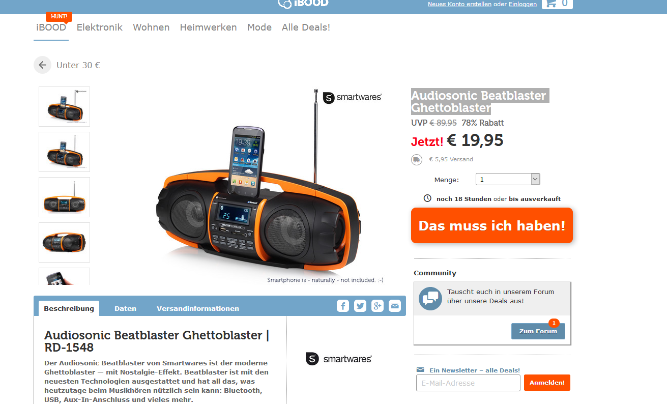 ibood Audiosonic Beatblaster RD-1548 für 35,90