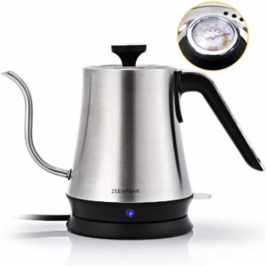 ISENPENK Wasserkessel besteht aus Edelstahl, hochwertig, robust und mit hoher Wattzahl & Abschaltautomatik, das Wasser kocht damit schneller auf. Durch den langen und schmalen Hals fließt das Wasser (oder der Tee) zielsicher in die dafür vorgesehene Tasse und tropfen tut nichts. Die Temperaturanzeige ist leicht lesbar für eine einfache, genaue Temperatur des Wassers. Perfekt für den täglichen Gebrauch!