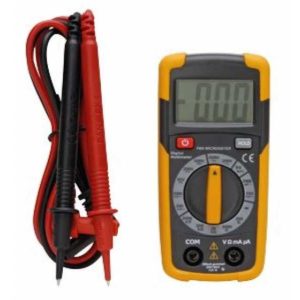 Digitalmultimeter MICROMETER; 6 Funktionen, 16 Wahlbereiche, Wechselspannung bis 300V, Gleichspannung bis 300V Gleichstrom bis 200mA, Widerstand bis 2 MΩ, Diodentest, Batterietest bis 9V, Sicherung für Gleichstrom 0,2A/600V, Messleitung mit Messspitzen, Warnfunktion bei schwacher Batterie, inkl. 12V Batterie, Data Hold Funktion, 3,5 stelliges Display, Messkategorie CATIII 300V.
