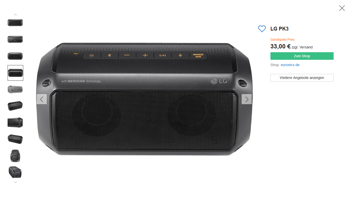 Bei Euronics bekommt ihr den LG PK3 Multimedia-Lautsprecher Bluetooth für 33,00 statt PVG ab 41,80 Euro inkl.Versand.