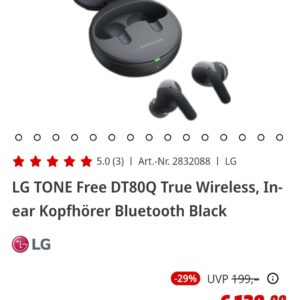 Hallo zusammen, aktuell gibt es bei MediaMarkt und Saturn den LG DT80Q in schwarz und weiß zum Preis von 139.99€. Zusätzlich gibt es 20€ Cashback vom Hersteller und einen 50€ Einkkaufscoupon on top👍