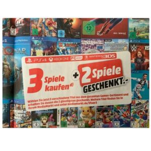 Bei MediaMarkt startet ab morgen eine 5 für 3 Aktion die für alle Plattformen und das gesamte Sortiment gilt. Soll heißen, ihr legt 5 Spiele in den Warenkorb und bekommt die 2 günstigsten davon geschenkt. In der Regel starten solche Aktionen Abends um 20 Uhr und spätestens am Folgetag auch im Markt vor Ort. Die Aktion wird bis zum 23.04.19 laufen euer Peanuts ?
