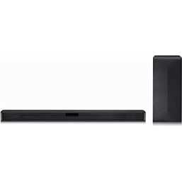 In schwarzem Design glänzt das Modell mit zeitlosem Stil und Eleganz. Die Bestandteile des Systems sind ein Subwoofer und eine Soundbar. Ein großer Vorteil der beiden Kanäle und des Subwoofers (2.1 Lautsprechersystem) liegt in deren unkomplizierter Montage. Obwohl satte und intensive Effekte für beste Klangqualität sorgen, müssen Sie nicht mit einem Kabelsalat rechnen. Einfach ein perfekter Kompromiss! Am Gerät sind folgende Anschlüsse vorhanden: 1x Optisches Kabel und 1x USB. Natürlich können Sie Musik oder Filme auch über Bluetooth abspielen. Das Produkt verfügt über eine Gesamtleistung von 300 Watt. Bei der Basserzeugung setzt der Subwoofer leistungsstarke 200 Watt ein. Hinzu kommt eine ganze Liste an tollen Funktionen: Automatische Klanganpassung (ASC), Dynamic Range Control (DRC), Empfohlene Nutzung mit mindestens 40″ LG TVs, LG Sound Sync und Nacht Modus.