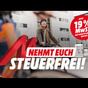 Bedingungen: Aktion gültig im MediaMarkt Onlineshop auf mediamarkt.de (nicht gültig bei Käufen von Drittanbietern) und Märkten vom 17.10., 8:00 Uhr bis 24.10.21, 23:59 Uhr, vorbehaltlicheiner Verlängerung. Nur solange der Vorrat reicht. Nur gültig auf vorrätige/sofort verfügbare Ware. Keine Nachbestellungen/Vorbesteller nehmen nicht an der Aktion teil. Abgabe nur in haushaltsüblichen Mengen. Aktion gültig für Haushaltsklein- und -großgeräte (Einbaugeräte ausgenommen), Smartphones der Marke OPPO, gekennzeichnete PCs/Notebooks/Tablets/Convertibles, Monitore und Drucker, Tchibo Artikel (Tchibo Cafissimo Kaffeekapseln ausgenommen), sowie vom 21.10. – 24.10. auf alle TV-Geräte der Marken OK., LG, Samsung, Sony, Philips, Panasonic, Grundig, TCL, Coocaa, Hisense und Xiaomi. Käufer erhalten einen Nachlass in Höhe des inkludierten Mehrwertsteueranteils, der auf den ausgezeichneten Preis anfallen würde. Der Mehrwertsteueranteil entspricht einem Nachlass von 15,966% des jeweiligen Kaufpreises und wird auch auf 7% MwSt.-Artikel gewährt. Der Nachlass ist im ausgezeichneten Preis bereits berücksichtigt. Nicht kombinierbar mit anderen Aktionen.