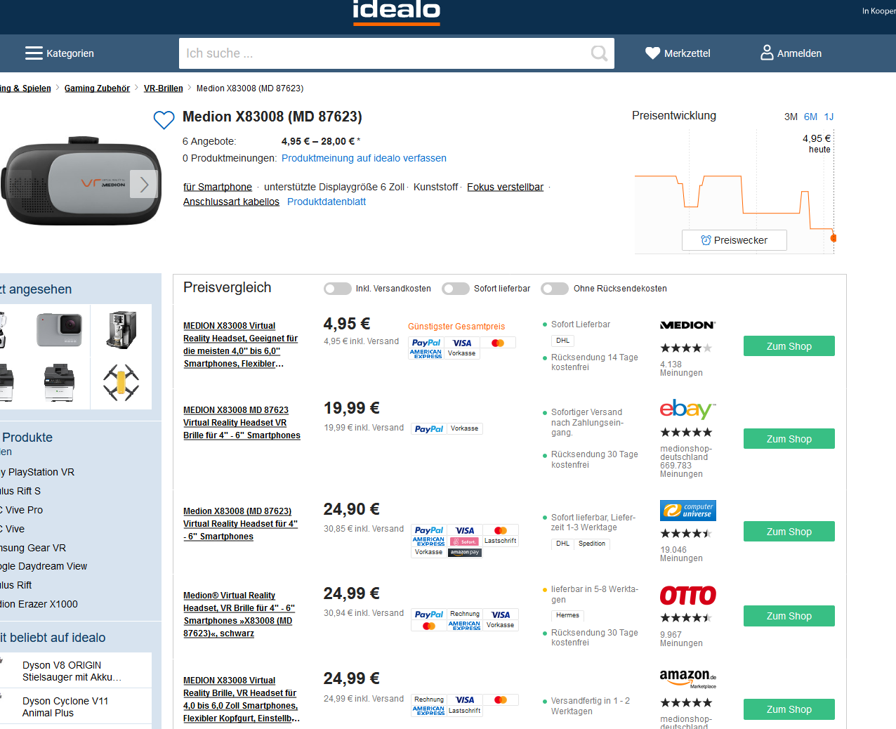 Denn dort bekommt man das MEDION X83008 Virtual Reality Headset für 4,95€ inklusive Versandkosten!