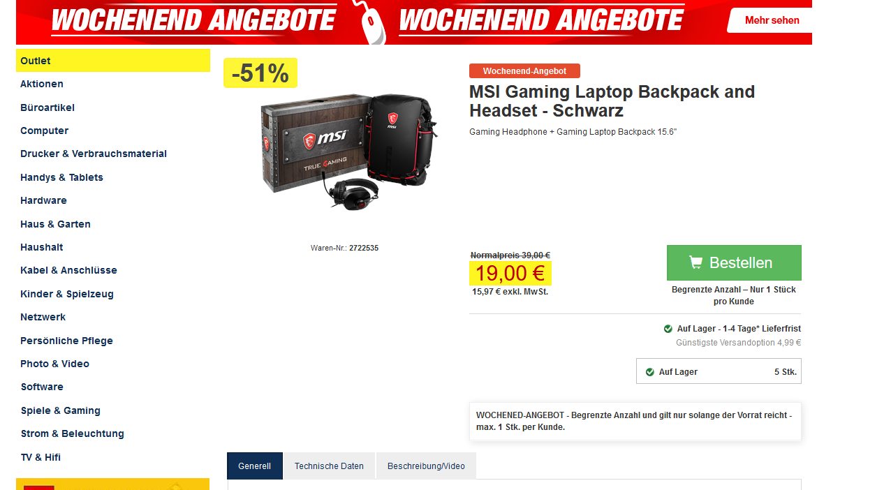 WOCHENED-ANGEBOT – Begrenzte Anzahl und gilt nur solange der Vorrat reicht – max. 1 Stk. per Kunde.