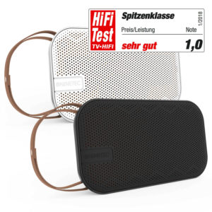 - Dank des einklappbaren Standfußes können Sie den Speaker überall bestens platzieren. Der praktische Trageriemen in Leder-Optik bietet Ihnen zusätzlich die Möglichkeit den Lautsprecher zu befestigen oder zu tragen