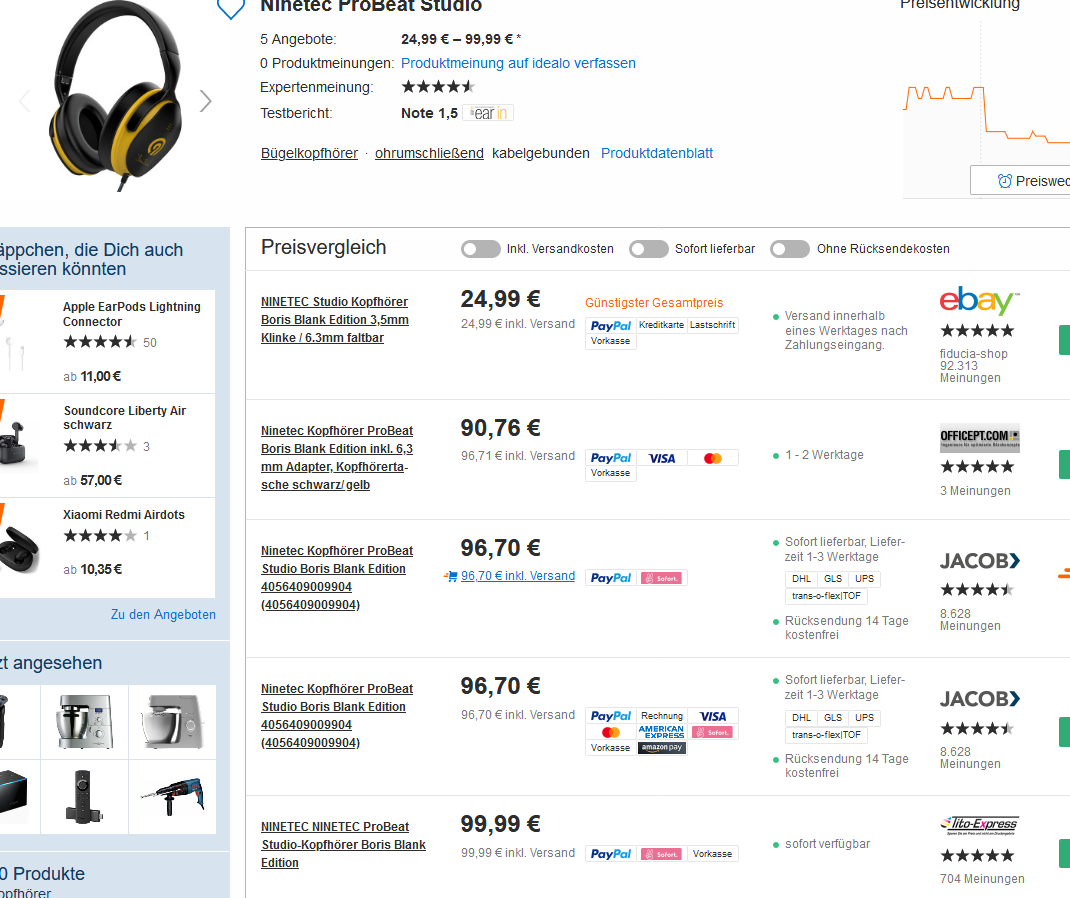 Lieferumfang & Versand 1 x NINETEC ProBeat Studio Kopfhörer Boris Blank Edition inkl. Aufbewahrungstasche 1x 6.3mm Adapter