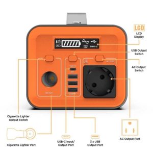 Novoo Inverter-Powerbank mit 230WH, 200W-Steckdose, 1x USB C 60W PD, 3x USB A, 1x 12V und 18V Solar-Lademöglichkeit