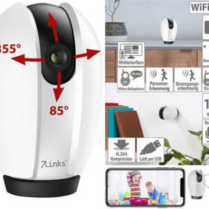 Pearl: 7links WLAN-Überwachungskamera mit 2K, IR-Nachtsicht, Pan/Tilt, App (€22,99 statt €56,99 + VSK)