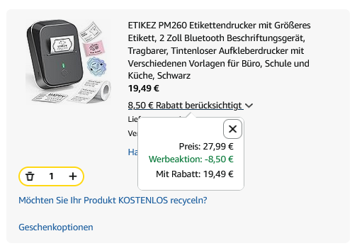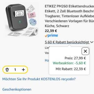 Auf der Suche nach einem Etikettendrucker bin ich bei Ebay auf diese Aktion gestolpert.