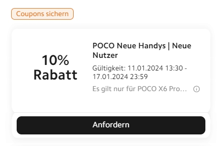 Neues Smartphone gesucht? Direkt bei mi.com erhaltet ihr das POCO X6 Pro 5G für 349,90€ statt 380€. Dazu nutzt ihr einfach den 10% Rabatt-Coupon direkt auf der Artikelseite. 🙂