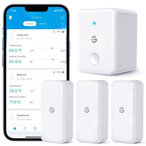 - WLAN Temperatursensor: Mit den 3 mitgelieferten Sensoren können Sie Temperatur- und Luftfeuchtigkeitsdaten in Echtzeit von überall aus mit der Govee APP überwachen. Das WiFi-Gateway kann mit bis zu 10 Sensoren verbunden werden.