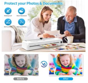 - Laminatdokumente ist bis zu 330mm(A3) breit und bis zu 0,6 mm dicke.und geeignet für Foto, Karte, Zertifikate, Arbeitserlaubnis, Menü, Malerei, etc.Durch Laminierung können Sie Ihre Dokumente, Fotos und Gemälde besser schützen und ihre Farbqualität verbessern.