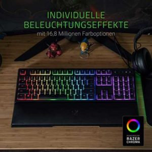 - Anpassbare Razer Chroma-Hintergrundbeleuchtung mit 16,8 Millionen individuellen Farboptionen: Mit der Razer Ornata Chroma lassen sich nicht nur verblüffende Beleuchtungseffekte erschaffen und präsentieren. Dank interaktiven Effekten im Spiel wird das Gameplay-Erlebnis noch fesselnder, denn die Tastatur reagiert auf das Spiel