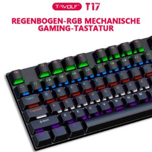 Rexsun Mechanische Tastatur – 104 Tasten, RGB-Hintergrundbeleuchtung, USB-Kabel, Anti-Ghosting, ergonomisches Design, kompatibel mit Windows & Mac, Schwarz, T17 für 26,99€ statt 39,99€