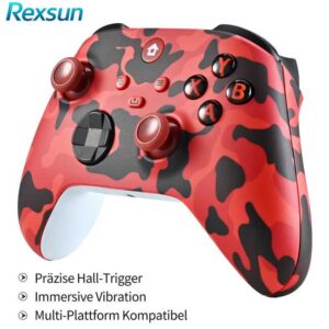 Joybuy verkauft aktuell den Rexsun Xbox Controller Kabelloser 2,4-GHz-Gamepad – Duale Stromversorgung, Vibrationsfeedback, Kompatibel mit Xbox One & PC, Camouflage Rot