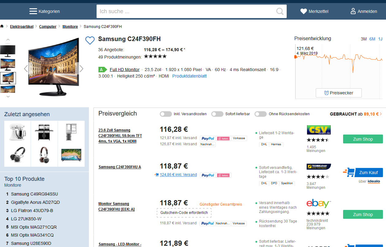 Bei Amazon bekommt ihr den Samsung C24F390F 61 cm (24 Zoll) Curved Monitor (VGA, HDMI, 16:9, 4ms) für 99 statt PVg ab 118,00 Euro inkl.Versand
