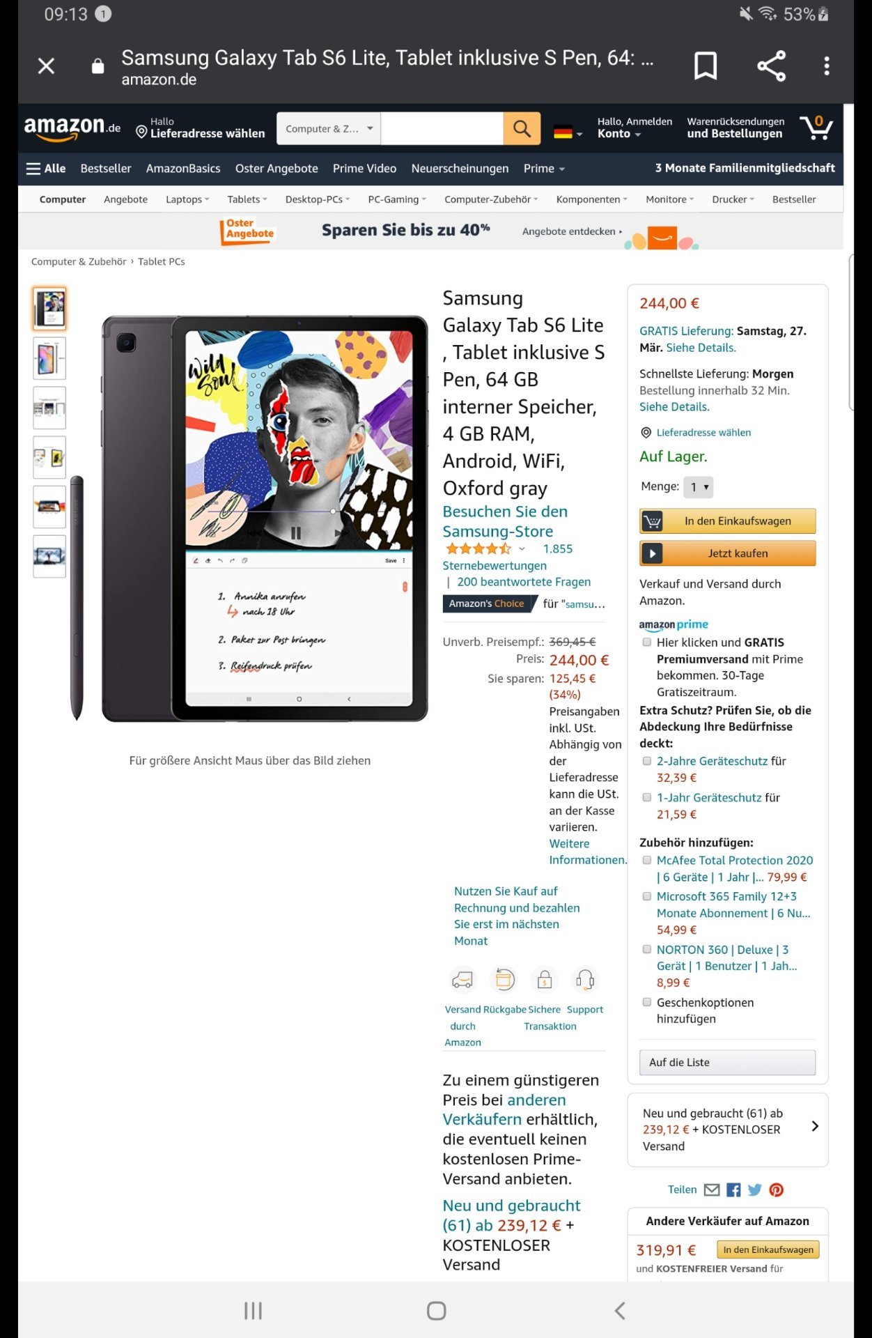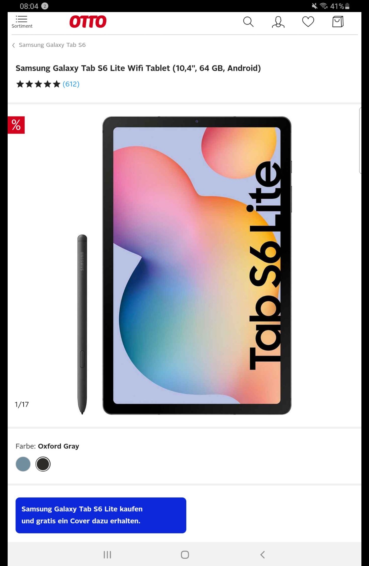 Samsung Galaxy Tab S6 Lite für 244€ (+ 2,95€ Versand) inkl. gratis Keyboard Book Cover (idealo: 72€)