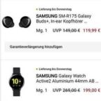 MediaMarkt & Saturn Jetzt die Samsung Galaxy Watch Active 2 kaufen und die Galaxy Buds+ dazu erhalten für 189€ (mit Newsletter -10€) inkl.Versand