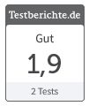 Bei Testberichte.de erhält der TV die Gesamtnote „gut“ (1,9), diese setzt sich aus 2 Tests von Stiftung Warentest mit jeweils der Note 1,9 zusammen.