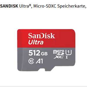 Auf MediaMarkt bekommt man versandkostenfrei den SANDISK Ultra, Micro-SDXC Speicherkarte, 512 GB, 100 MB/s für 55€ statt PVG ab PVG ab 74€