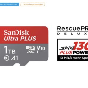 SANDISK Ultra PLUS, Micro-SDXC Speicherkarte, 1 TB, 130 MB/s für 134,49€ inkl. Versand. Ihr müsst Saturn Card Inhaber sein und den 10€ Newsletter Gutschein einsetzen um auf den Preis zu kommen.