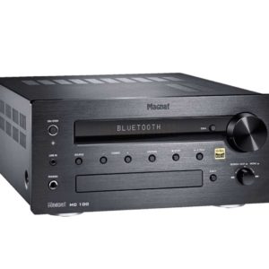Der Magnat MC 100 ist ein kompaktes Multitalent mit audiophilem Klang. Seine exklusive Hi-Res-zertifizierte Wandler- und Verstärkersektion macht ihn zum klanglichen Überflieger und mit seinen stabilen Endstufen ist er der perfekte Spielpartner für hochwertige Lautsprecher. Trotz seiner kompakten Abmessungen kann er mit der vollen Bandbreite moderner und klassischer Medien aufwarten: Neben dem hochwertigen CD-Laufwerk bietet er einen UKW-Tuner, einen zukunftssicheren, digitalen DAB+ Empfänger sowie Bluetooth in der klanglich besten Variante aptX™. Analoge und digitale Eingänge runden das Angebot an Quellen ab. All das ist in einem hochwertigen Gehäuse aus massivem Metall verpackt und mit einer gebürsteten Aluminiumfront versehen. Mit den ebenfalls aus Aluminium gefertigten Bedienelementen lässt sich der MC 100 genauso intuitiv steuern wie mit der mitgelieferten Fernbedienung. Für Klarheit bei der Kommunikation sorgt das edle, zweizeilige Display auf der Front.