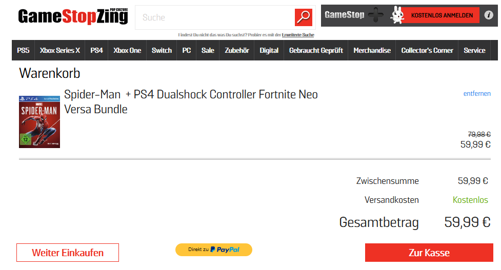 Bei Gamestop bekommt man zum Top Preis die Sony DualShock 4 V2 Fortnite Neo Versa Bundle + Marvel’s Spider-Man für nur 59,99 EUR inkl.Versand solange Vorrat reicht.